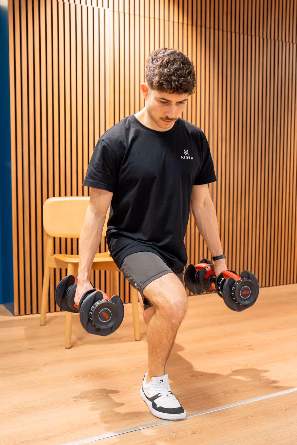 - Ausführung: Stellen Sie ein Bein auf eine Bank hinter sich. Halten Sie Kurzhanteln und führen Sie kontrollierte Kniebeugen aus.